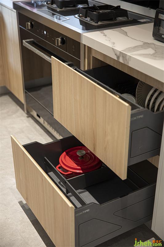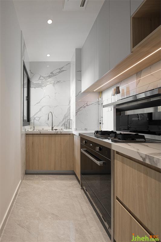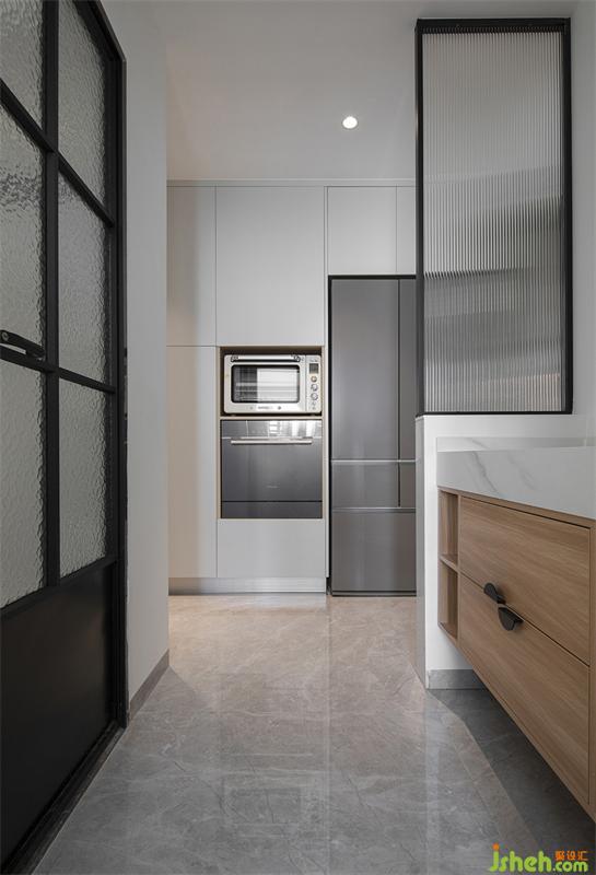 深圳家居設(shè)計(jì)所有的廚房電器和集成灶完美地融合在櫥柜里面,整齊的收納方式以及干凈明亮的櫥柜顏色給人一種舒適感。