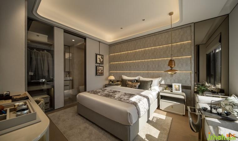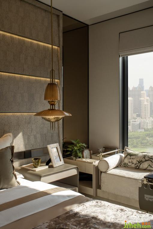 次臥延續(xù)靜謐空間語言,塑造出兼具格調(diào)與溫度的休憩場域??椢锏娜彳洝⒔饘俚木?、木質(zhì)的溫潤,共同構(gòu)建起多功能生活場景。從休憩到觀景、品茗,空間每一處皆訴說著現(xiàn)代輕奢的優(yōu)雅內(nèi)核,讓居者在細膩氛圍中,遇見生活的從容與詩意。