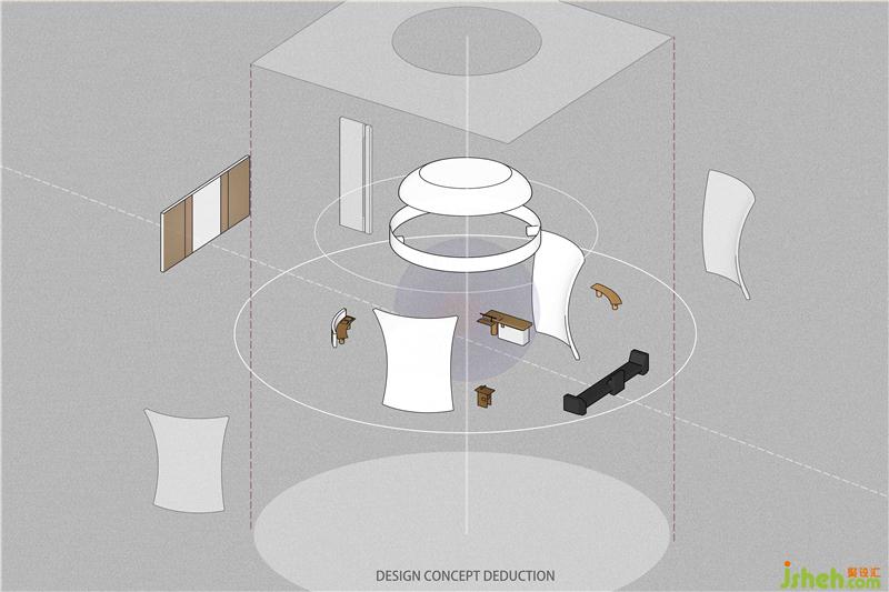 空間之間存在著感官上的節(jié)奏感,緊湊的,松弛的,流暢的,我們的空間感官被周?chē)绊懼?。入口用柔和的弧線(xiàn)展示歡迎的姿態(tài),等待觀(guān)眾投入它的懷抱。當(dāng)我們從入口緩緩進(jìn)入這個(gè)神秘的空間,謹(jǐn)慎的空間感官才被突然張弛開(kāi)來(lái),一緊一放之間帶給人驚喜之感。