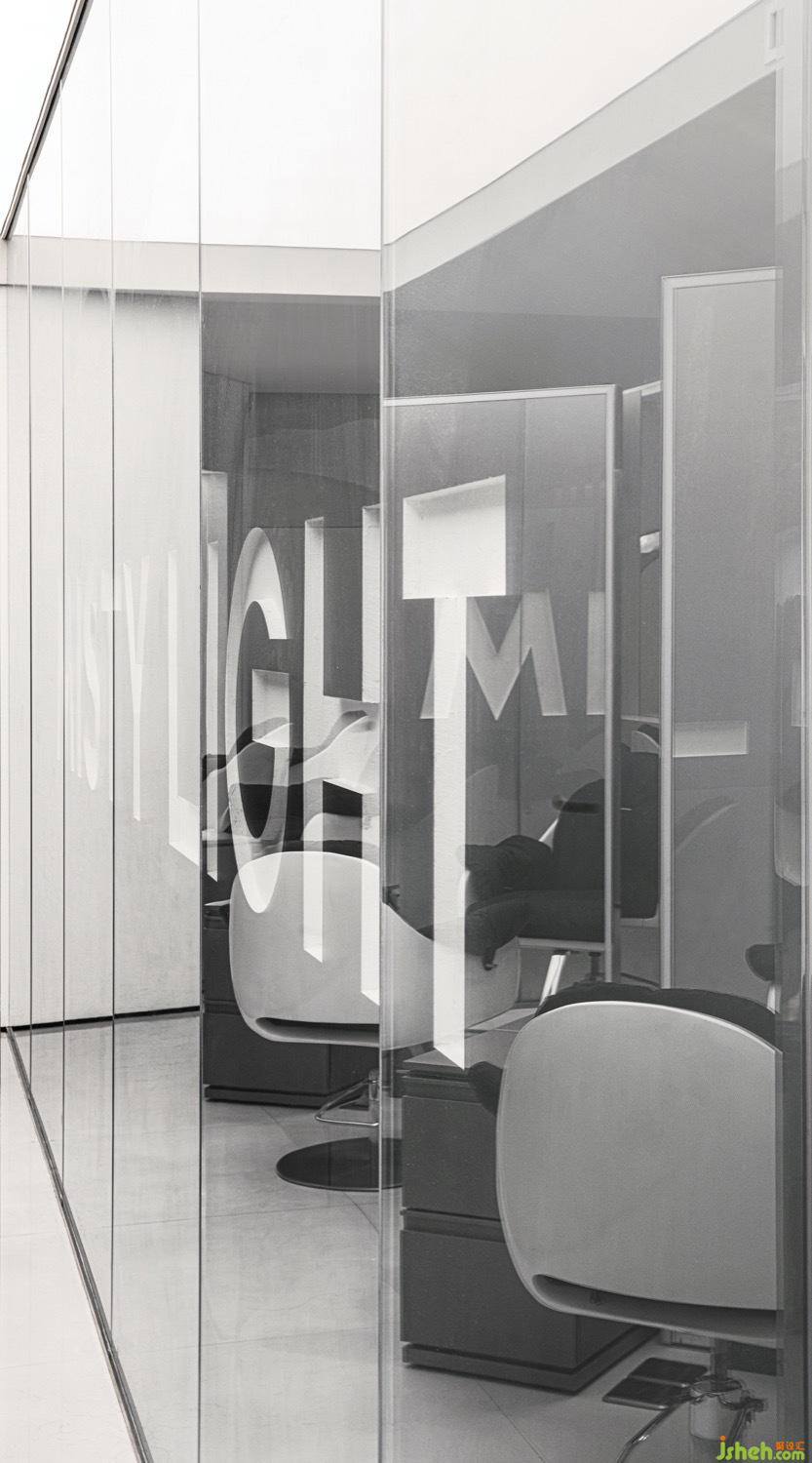 理發(fā)椅前選用的大面積方形鏡子增強(qiáng)了空間的縱深感和空闊感,讓打斷的線條被重新鏈接起來(lái),形成對(duì)立和平衡的“新”空間