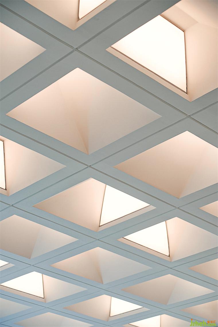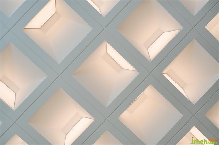 普拉提區(qū)利用格柵天花緩解空間的封閉感,旗艦店設(shè)計(jì)暖白色燈膜營(yíng)造專屬的純粹氛圍,柔軟又感性。