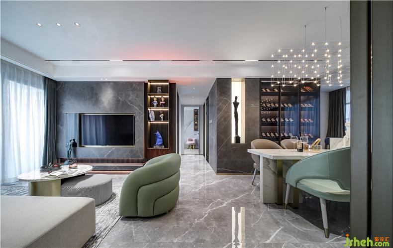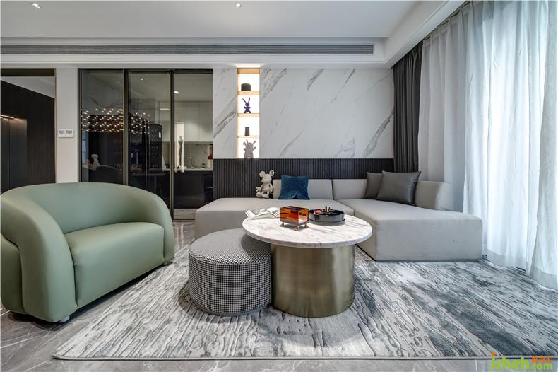 客廳以現代風格為框架,融入輕奢的金屬質感