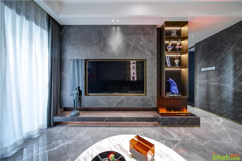 茶幾上的筒燈,電視背景墻下的隱藏燈帶