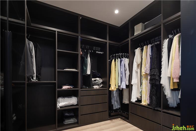 主體是深色木紋頂天立地大衣柜的衣帽間,以簡(jiǎn)潔實(shí)用的設(shè)計(jì)目的立意,不失都市生活的摩登氣質(zhì)室內(nèi)設(shè)計(jì)師