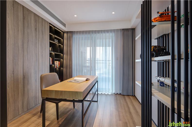 書房又稱書齋,齋者,潔也,有高潔清雅之意。以木色的簡(jiǎn)潔樸質(zhì)為主脈絡(luò),空間不失內(nèi)斂穩(wěn)重