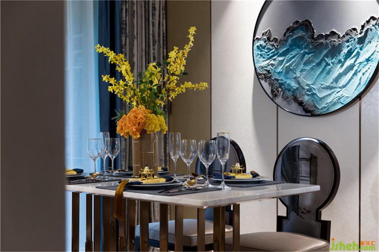本案定位于新中式風格,設(shè)計師以“山水如畫,層巒疊翠”為設(shè)計靈感,融合傳統(tǒng)和現(xiàn)代、東方和西方的文化元素,詮釋居主理想生活的品質(zhì)和樂趣,營造極具人文、禪意的舒適空間。
