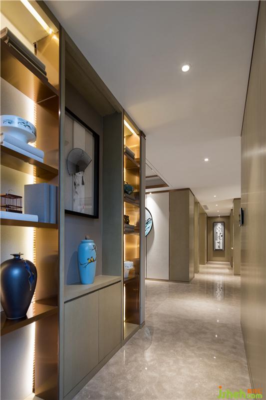 走道與書房相通,增加走道的空間感,使走道更加寬敞,通透。