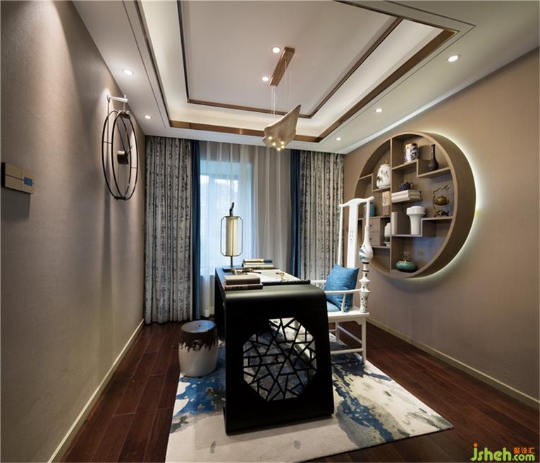藍黑水墨渲染的地毯,給書房空間增添幾許靜謐的氛圍,于書卷文物中品味禪意和淡然。
