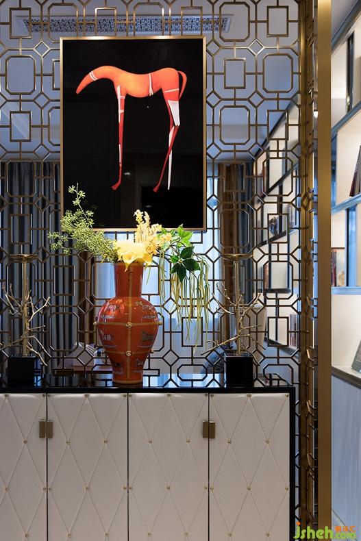 屏風(fēng)上的裝飾掛畫以愛馬仕主題為靈感,結(jié)合男主人對于賽馬運(yùn)動的熱愛,提取品牌經(jīng)典元素——馬和馬具文化進(jìn)行創(chuàng)作,營造一個(gè)具有藝術(shù)氣息和獨(dú)特品味的書房空間。