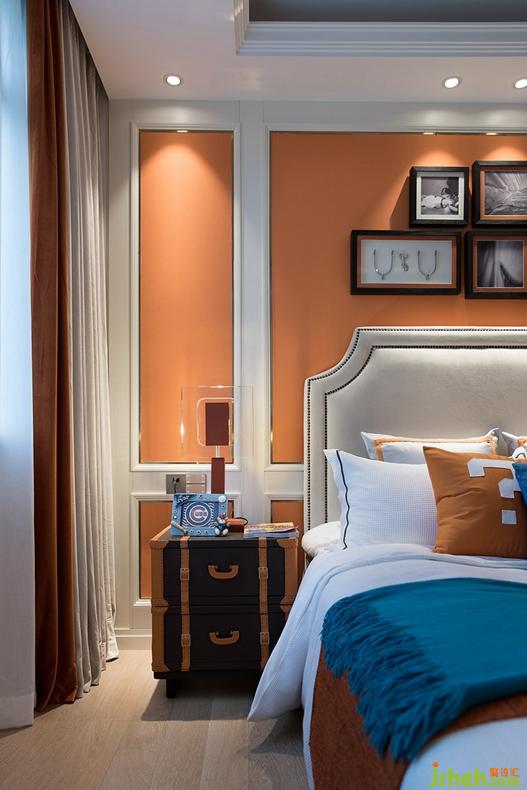 兒童房背景墻大面積的愛(ài)馬仕橙色賦予空間看得見(jiàn)的青春活力,室內(nèi)多重色彩的運(yùn)用豐富而不跳躍。