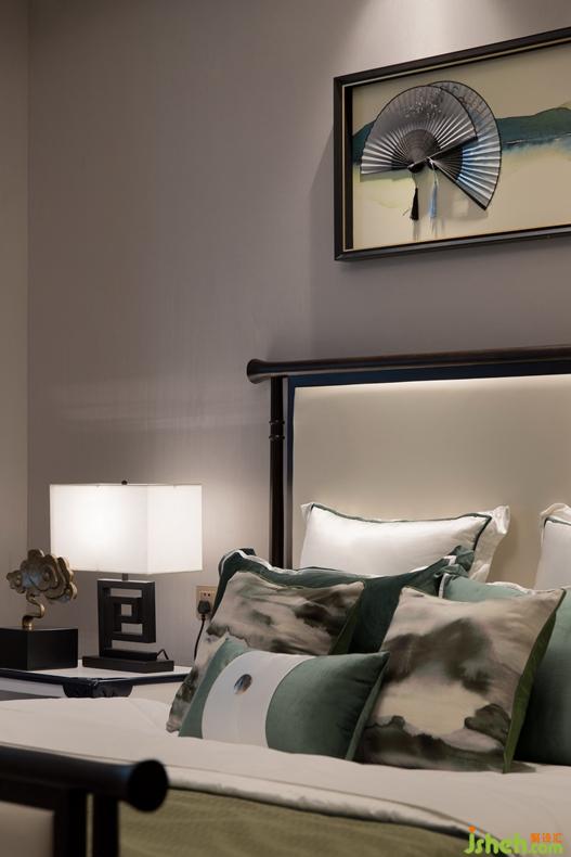 老人房整體空間散發(fā)出端莊素雅的迷人氣質(zhì),以橄欖綠、海軍藍(lán)搭配灰白色調(diào)凸顯東方自然樸素的格調(diào),訴說(shuō)歲月靜好般的從容和優(yōu)雅。
