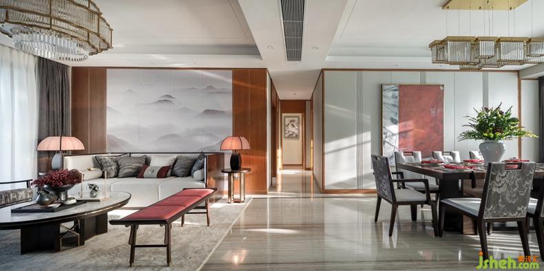 整體空間布局井然有序,傳達(dá)著中式對稱之美,良好的采光讓空間更加通透明亮。