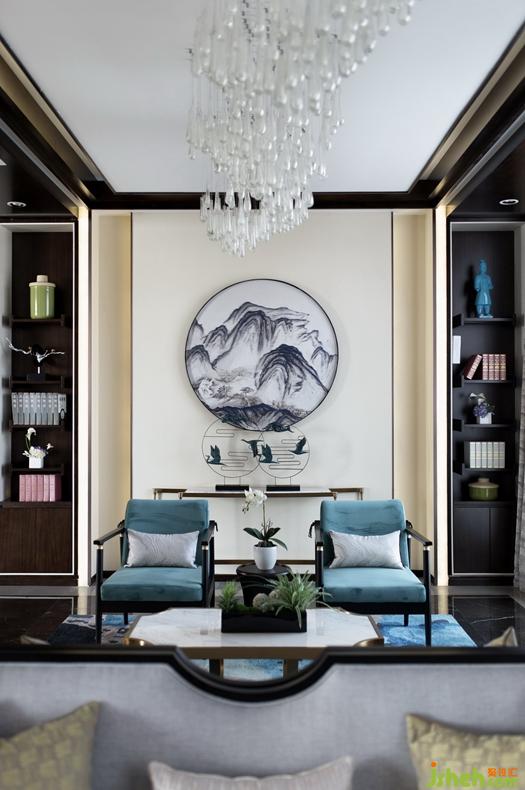 售樓部二層為兩個(gè)主要洽談區(qū),利用舒適的沙發(fā)軟墊觸感及新中式靠椅精致與古韻,同時(shí)于空間中融入抽象的山川元素,打造出洽談區(qū)的尊貴感。