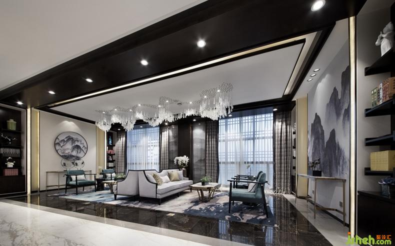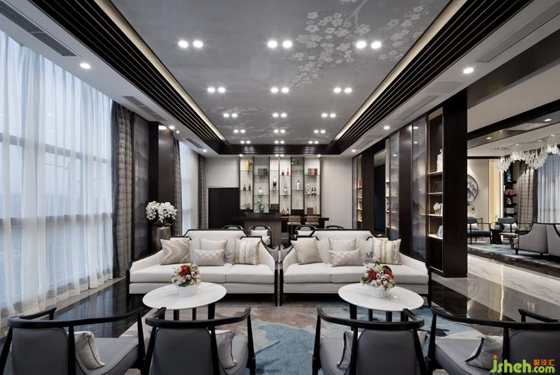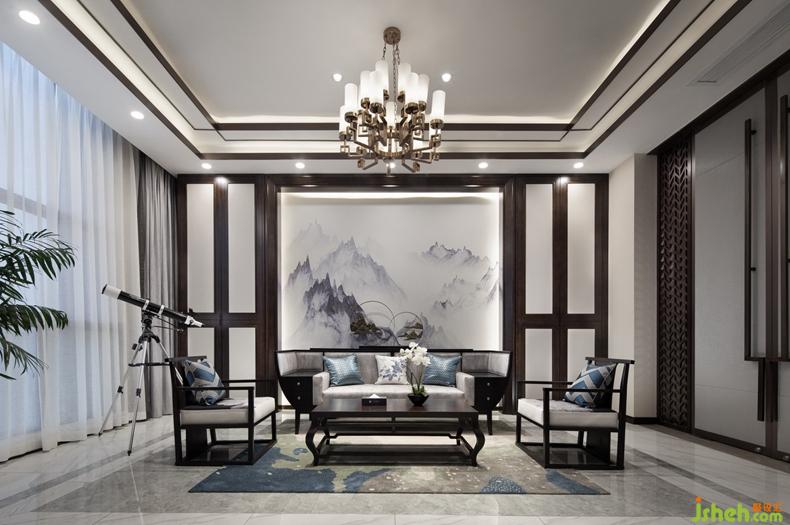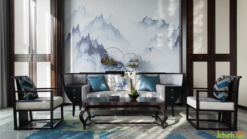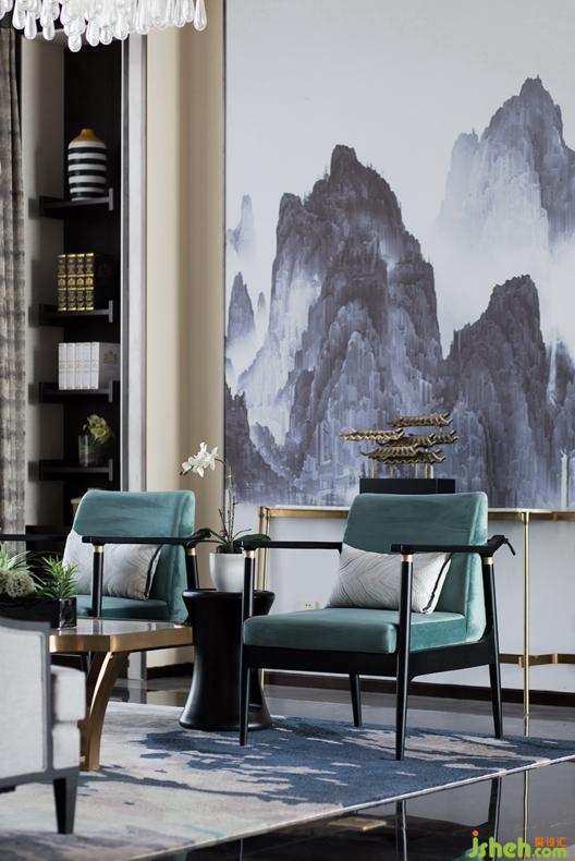 休閑區(qū)以藍色調寫意畫作為背景,不僅凸顯空間的優(yōu)雅詩意,且為空間留一份白,讓空間在傳統(tǒng)的木色中不乏輕盈感。