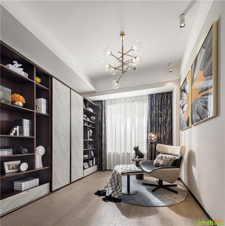 書房在簡潔和傳神中找到精妙平衡點(diǎn),無論是溫潤的皮椅套裝樣板房設(shè)計(jì),還是書架中點(diǎn)睛的藝術(shù)品,都鋪陳出迷人時尚質(zhì)感,達(dá)成物質(zhì)品味與精神追求的合二為一