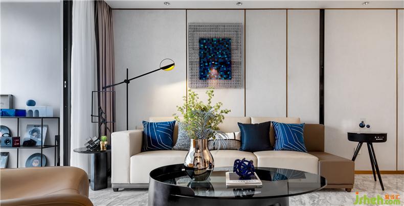 整體空間采用清雅大氣的白色為空間底色,與具有質(zhì)感的金屬色互相映襯,樣板房軟裝設(shè)計使空間寧靜致遠。在打造出具有休閑領(lǐng)域感的空間后,用藍色跳色點綴空間,延伸出無限藝術(shù)遐想。