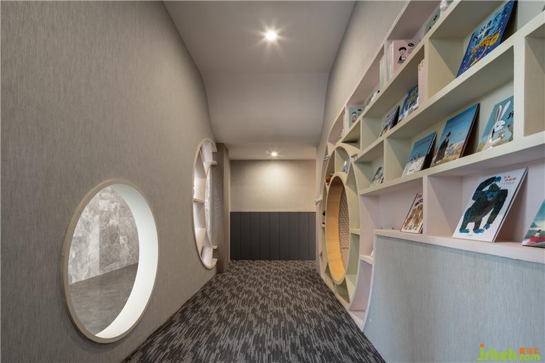 以“夢(mèng)幻時(shí)光”為主題的兒童區(qū),以淺色系為主要點(diǎn)綴色,以圓形為主要形態(tài),通過(guò)這條通道便是泡泡區(qū),與主題呼應(yīng),充滿(mǎn)童趣和回憶,也給孩子們留下了永不幻滅的時(shí)刻