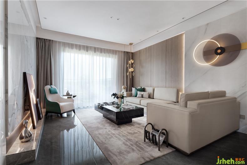 設(shè)計用精妙的手法,借助家具、裝飾的曲線與色彩,盡顯空間的優(yōu)雅魅力與生活的時尚趣味。舒適質(zhì)感的白色沙發(fā)與單椅,不經(jīng)意間點綴少量金屬與藝術(shù)品。獨有的光澤巧妙地穿插融合,使空間的內(nèi)涵與品質(zhì)得到豐富。