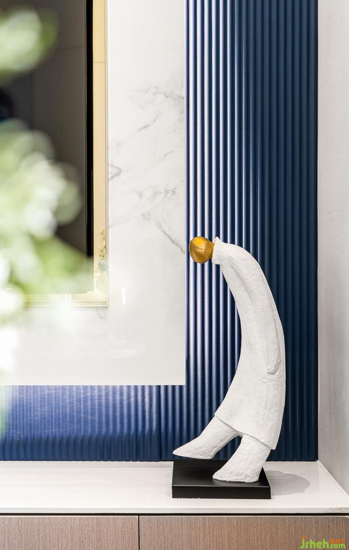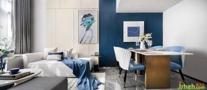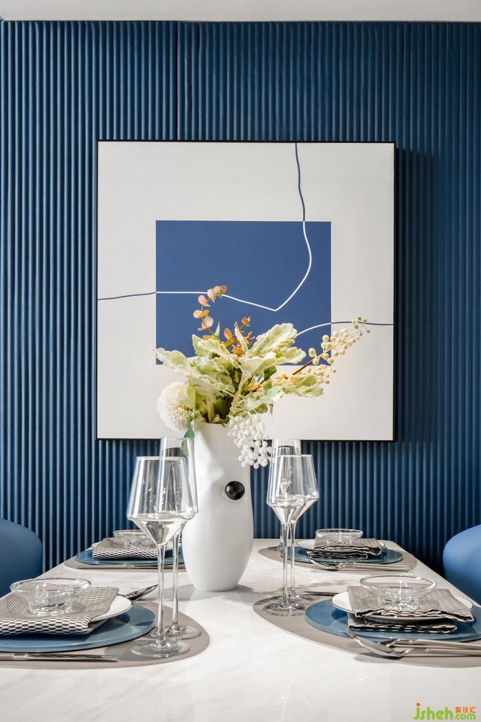減去多余的負(fù)累,生活才會(huì)更加輕盈。餐廳的設(shè)計(jì)簡約精致,公寓樣板房設(shè)計(jì)只藍(lán)白二色的裝飾畫簡單卻充滿格調(diào),靠墻放置的巖板餐桌,搭配香檳色的金屬材質(zhì)桌角,看似簡單的風(fēng)格下,不經(jīng)意間透出一絲驚喜,讓人驚艷