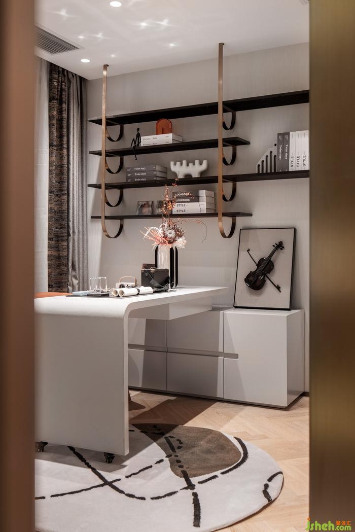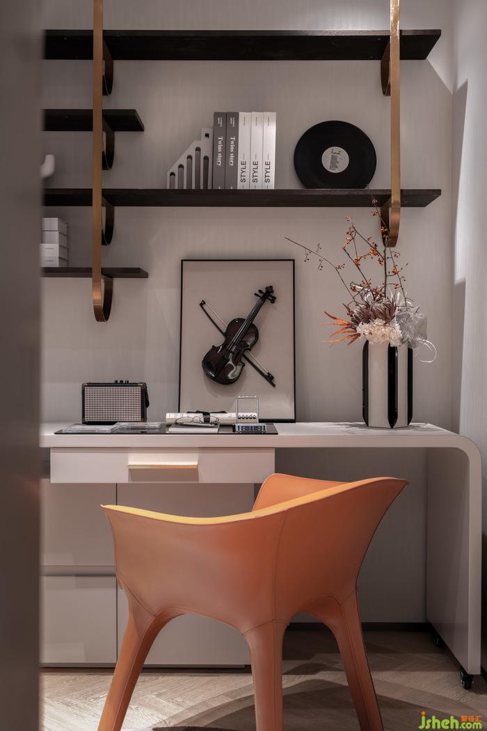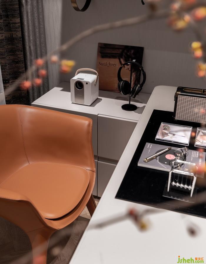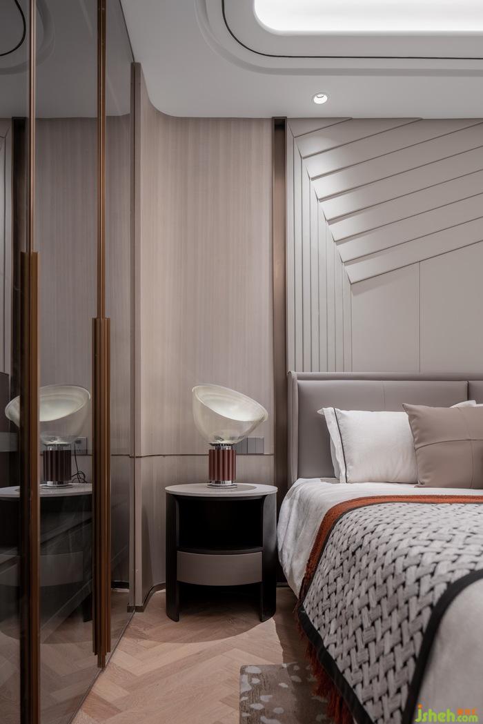 主臥整體色調(diào)偏暖,床上皮革與棉麻的質(zhì)地中流露出溫馨與幸福感,樣板房軟裝設(shè)計床尾的收納柜兼顧著功能性與美觀性。這里是身心的最終歸屬,在這放松直至第二天的清晨陽光撒入房間,放松時坐在明媚舒適的飄窗好不愜意。
