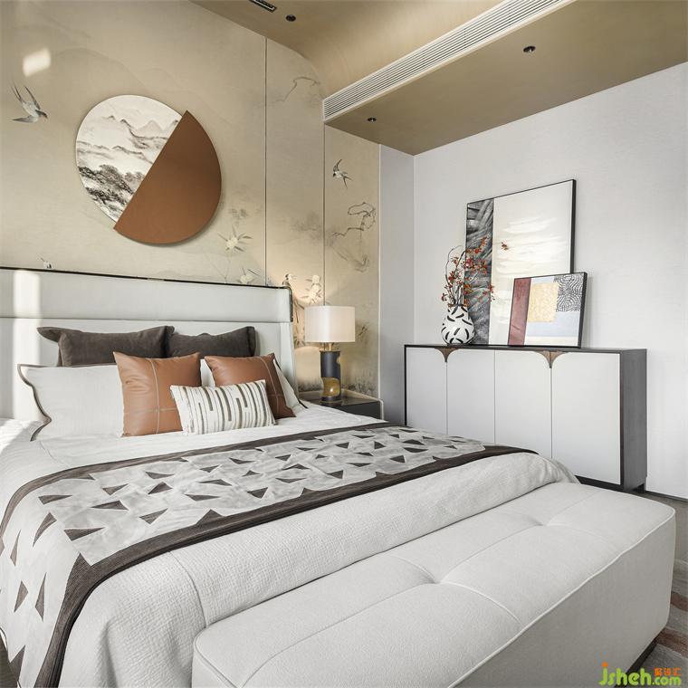 三樓主臥風(fēng)雅意境,既保留了古典東方的樣貌,又不失空間主題文化元素的交融呼應(yīng)。合院樣板房軟裝設(shè)計(jì)酣眠其間,仿若泛舟徜徉于碧波之上,喚起一派超然自若的愉悅境界。