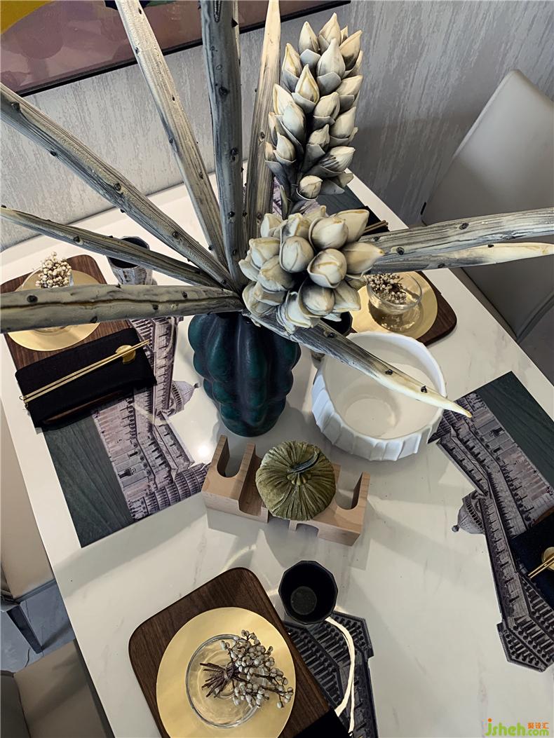 建筑畫(huà)裁剪的餐墊也非常吸引眼球,在粗礦的張力里感受到藝術(shù),