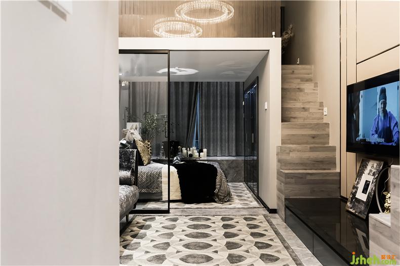 銀鏡與畫(huà)框升華了整個(gè)空間樣板房設(shè)計(jì)