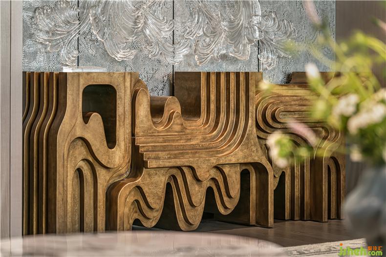 藝術(shù)風(fēng)格的玻璃鏡是客廳墻壁的焦點(diǎn),來自意大利玻璃家具品牌GLAS ITALIA,它將簡約與現(xiàn)代的奢華融為一體。在洛可可玻璃雕刻的邊緣,手工制作,復(fù)雜而精致,展現(xiàn)了意大利玻璃工藝的最高水平,與簡單透明的鏡子組合,一種獨(dú)特的藝術(shù)時(shí)尚存在。LED照明系統(tǒng)也可以用來增強(qiáng)和提高框架。
