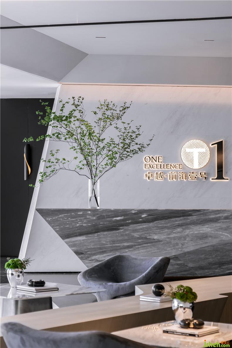 觀影結(jié)束,進(jìn)入項(xiàng)目沙盤展示區(qū)域,空間選材采用木紋鋁板與淺色水磨石墻面為主,辦公室設(shè)計深色石材基座造型簡約,建筑沙盤作為立體點(diǎn)綴成為了空間的焦點(diǎn)。