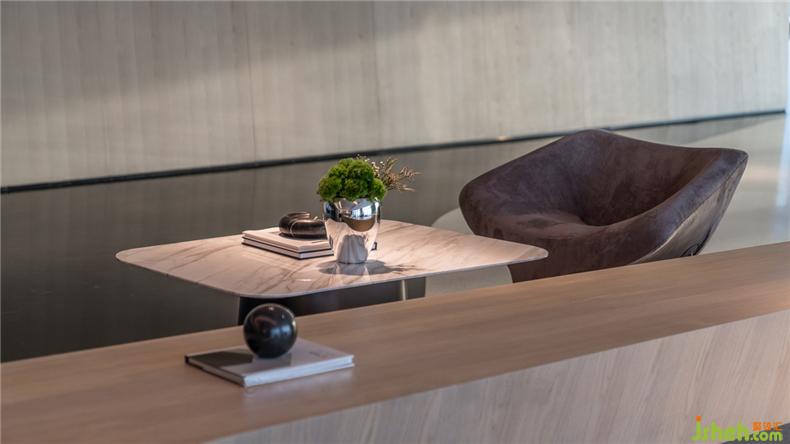 當(dāng)代極簡主義與藝術(shù)質(zhì)感審美的結(jié)合,摒棄浮華,將沉靜的顏色與純粹的材質(zhì)融入日常的舒適感。辦公室設(shè)計天然石材的肌理與原木色桌和諧過渡,搭配舒適內(nèi)斂的單人沙發(fā),空間簡約卻又不失清雅。