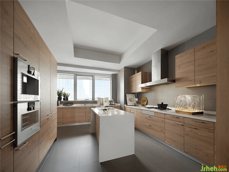 約26㎡的中西廚,在原木風(fēng)格的硬裝設(shè)計(jì)上,增加了光源裝置,科技感與時(shí)尚感相結(jié)合的創(chuàng)意設(shè)計(jì),讓整個(gè)空間更加通透明亮。