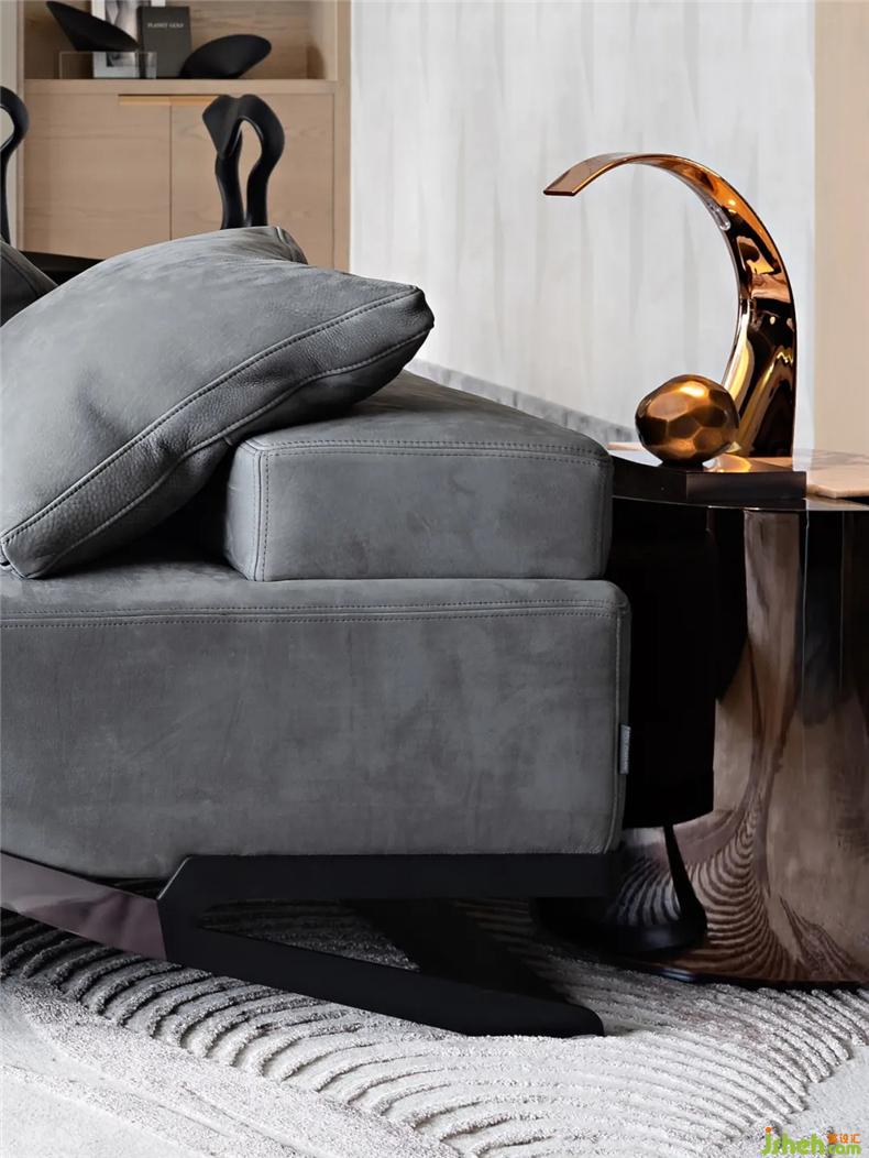 偏廳手工澆鑄的鉑晶茶桌,其底座的曲線(xiàn)設(shè)計(jì)極具雕塑感,與純實(shí)木一體雕的Dommus椅子共同營(yíng)造前沿會(huì)客廳,每把椅子的倒流都有細(xì)微的變化,優(yōu)雅圍繞在桌邊。