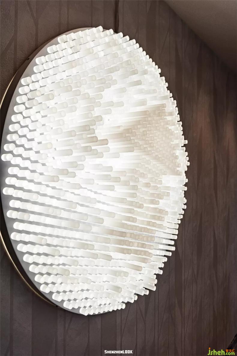 設(shè)計(jì)師在樣板間中對(duì)燈光元素的運(yùn)用也獨(dú)具風(fēng)格,靈感來(lái)自阿斯頓馬丁的車(chē)燈,打造風(fēng)馳電擎的光感意象。在不同的位置裝置各具特色的定制級(jí)燈飾,每件都儼然是獨(dú)具魅力的藝術(shù)作品,瞬間提升空間奢雅格調(diào)。