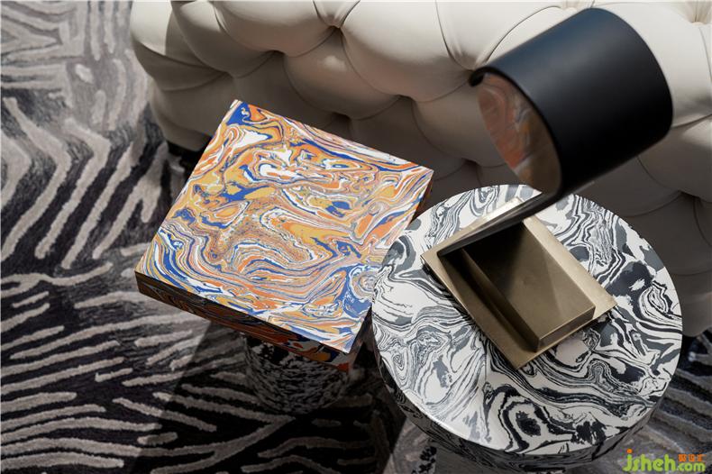 用餐區(qū)高度重視藝術表現(xiàn)方式,采用兼具裝飾性與趣味性的家具,樣板房設計營造前衛(wèi)的藝術用餐空間。Ella扶手椅、藝術餐桌、現(xiàn)代輕奢熔巖吊燈與熔巖落地燈共同優(yōu)雅了用餐空間。