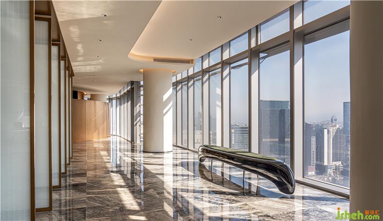 接待臺另一側(cè)的飛機主題裝置藝術(shù)《TAKE OFF起飛》,寓意了城市繁忙向上的商務精神。藝術(shù)品描繪的是深圳國際機場每天繁忙而有序的起落節(jié)奏,為這個國際大都會帶來繁榮的商務往來,欣欣向榮的深圳國際大都會,每一天都在發(fā)生新的變化。