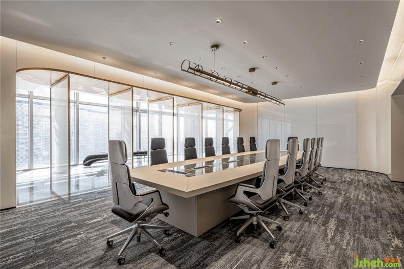 作為頂級商務空間的辦公設(shè)計,一切都以高效為前提,會議室整體猶以白色墻面為主調(diào),淡金色為點綴,以灰色地毯將整個場景的氣息沉穩(wěn)收斂??臻g干凈、整潔、令人平心靜氣,高效辦公,呈現(xiàn)出“少即是多”的留白空間美感。