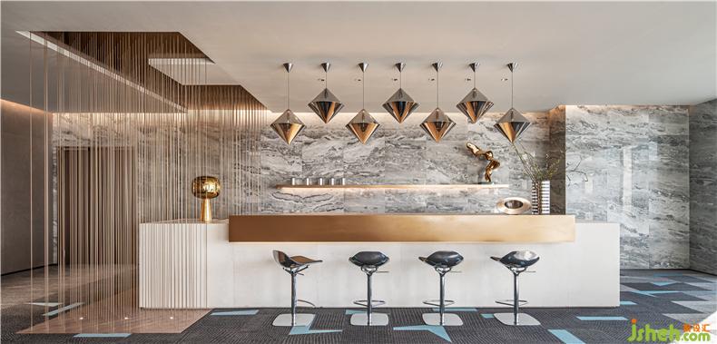 一個(gè)舒適的辦公環(huán)境可以很有效地提高員工的幸福感,從而提升工作效率。休閑水吧便是為職場精英忙碌身心預(yù)留的一個(gè)精神領(lǐng)地。開放式的休憩空間,不同材質(zhì)的搭配應(yīng)用,達(dá)到一種克制與平衡,如同隨時(shí)會注下的水流意象設(shè)計(jì),營造出極具未來感的場所精神與空間氣質(zhì)。