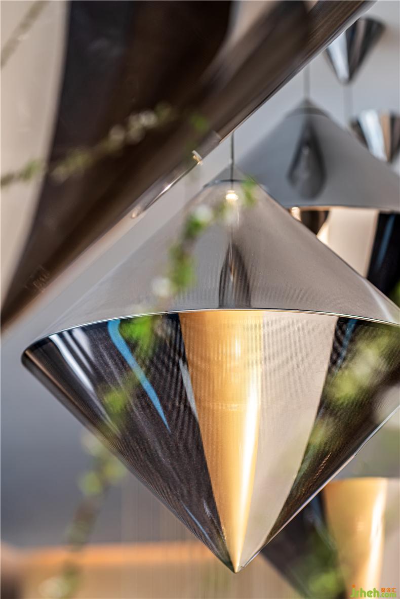 水吧區(qū)垂掛的一組TOMDIXON的TOP Silver Pendant燈具,精致而優(yōu)雅,是材料與制造工藝的創(chuàng)新之舉。微穿孔燈罩如細(xì)膩的濾網(wǎng)拋光不銹鋼表面通透明亮,散發(fā)出陣陣溫暖的光芒,輕盈空靈。不銹鋼的質(zhì)地與羅斯堡RocheBobois的銀色不銹鋼椅相得益彰,造型簡潔卻質(zhì)感十足,時(shí)尚與前衛(wèi)的設(shè)計(jì),彰顯不凡格調(diào)。