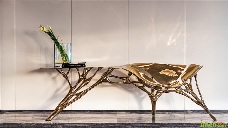 一根鏈接的金屬,如樹干和枝蔓一般,經(jīng)過(guò)人工手工錘彎,塑形,拋光,打磨,每一寸肌理都由匠人精鑄而成,雕塑的桌腳形態(tài)如同起伏永不停歇的植物脈絡(luò),展現(xiàn)源源不斷的能量。與華麗光潔的金屬質(zhì)地更好的呈現(xiàn)了藝術(shù)的氣質(zhì),帶來(lái)時(shí)尚藝術(shù)的先鋒格調(diào)。最好的辦公室設(shè)計(jì),總是緣自理想主義的初衷。