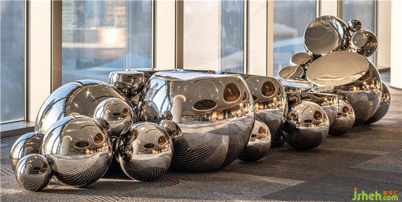 設(shè)計(jì)師定制打造系列充滿藝術(shù)感的家具,將功能性的家具,用藝術(shù)裝置的方式將其打造出來(lái),呈現(xiàn)“從生活里長(zhǎng)出來(lái)的藝術(shù)氣質(zhì)”。四件藝術(shù)裝置分布在不同的空間區(qū)域,形成在視覺(jué)上的延續(xù),又呈現(xiàn)不同的藝術(shù)表現(xiàn)形態(tài)。 藝術(shù)設(shè)計(jì)靈感汲取自然界中的形態(tài)作為元素,如水滴的形態(tài)、