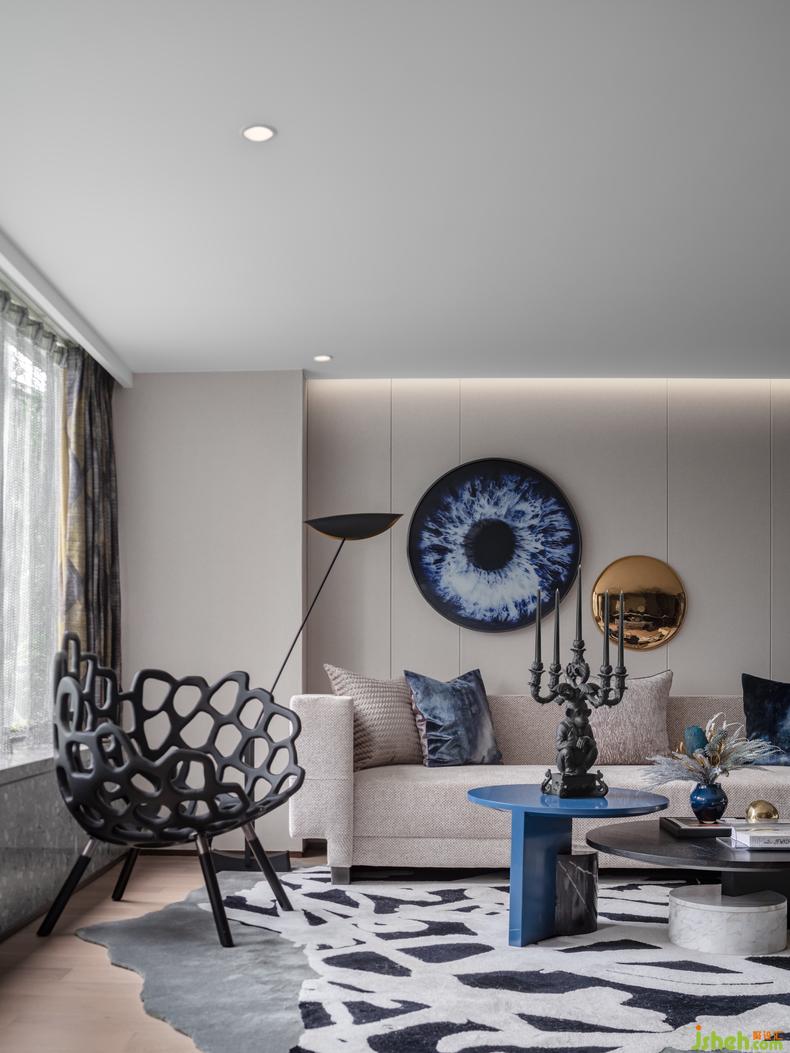 整體設(shè)計(jì)上以色調(diào)沉穩(wěn)的暖灰色為主,配以純凈的克萊因藍(lán)。清新淡雅,樣板房設(shè)計(jì)黑白百搭零差錯(cuò),這樣的色彩組合讓本來(lái)的簡(jiǎn)單平凡變得別樣精彩。