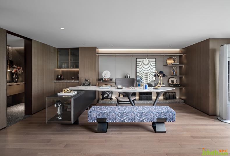 工作區(qū)域風(fēng)格雅致溫潤(rùn),色調(diào)的和諧統(tǒng)一將高光通透、樣板房設(shè)計(jì)極具質(zhì)感的材料和物件襯托起來(lái),再結(jié)合不同材質(zhì)的灰色加以點(diǎn)綴,灰色中不乏亮點(diǎn)。體現(xiàn)出現(xiàn)代人對(duì)品質(zhì)生活的態(tài)度和細(xì)節(jié)追求。