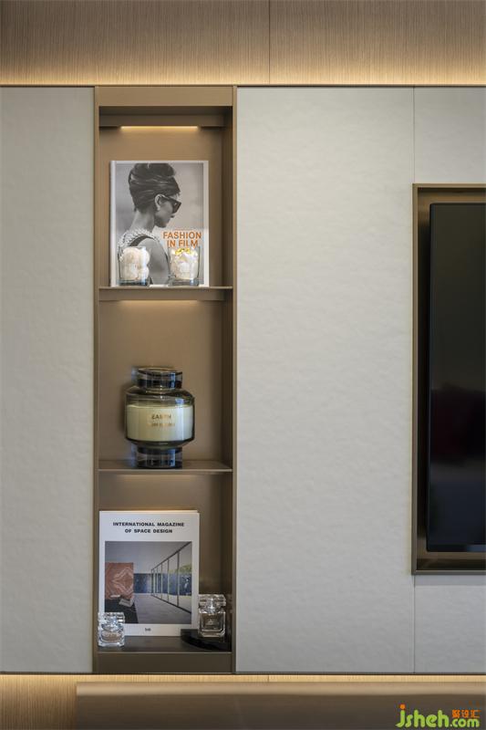 弧形與線條勾勒出別開生面的藝術(shù)之境,金屬元素的搭配豐富了空間美學(xué)。木質(zhì)色彩溫潤簡雅,柔和溫暖,頗具情調(diào)的光線透過鏡面反射,樣板房設(shè)計燈光暈染在墻壁上,散出幾分寧靜氣息