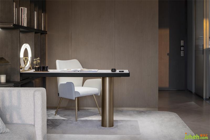 開放式書房將創(chuàng)造思維凝結(jié)于此,滿墻書柜設(shè)計在增加收納性的同時,使得整體空間更加飽滿。樣板房設(shè)計將客廳和閱讀區(qū)融為一體,打造集功能性與美學(xué)性為一體的空間,實現(xiàn)空間的多功能化