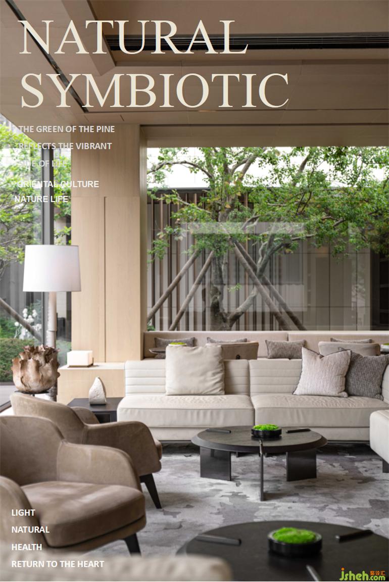 無規(guī)矩不成方圓,深圳營銷中心設(shè)計(jì)方為天圓為地,蒼松的綠映射了生活生機(jī)盎然的一面,軟裝以景中景的呈現(xiàn)手法,與窗外呼應(yīng),木質(zhì)、布藝、與地毯的組合關(guān)系,豐富了空間情緒。