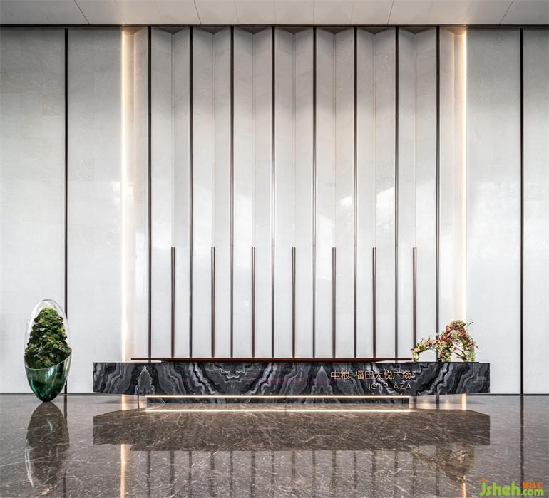 接待臺基底規(guī)整的大理石具有沉穩(wěn)理性的氣質格調(diào),以一顆結合了當代科技的種子作為穿越時間的容器,造中糧·大悅城的理想之國。