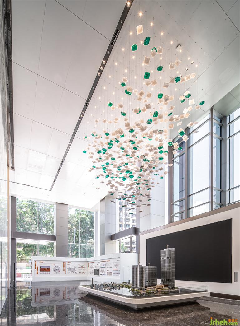 白與綠的“藝術之葉”漂浮在沙盤區(qū)上空,流動而有序的層次構造,室內(nèi)設計師勾勒出充滿律動感的環(huán)境。