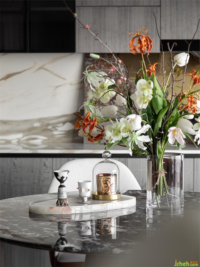 自然界的大理石通過藝術(shù)加工演變而成的燈具、樣板房設(shè)計(jì)西班牙藝術(shù)家ALBERTO BUSTOS的手工陶藝品、專業(yè)進(jìn)口水晶品牌GLASS的水晶飾品、The Baobab非凡格調(diào)香薰,充滿靈性之美的藝術(shù)交匯,構(gòu)成了一個(gè)低調(diào)奢華且“獨(dú)一無二”的藝術(shù)空間。