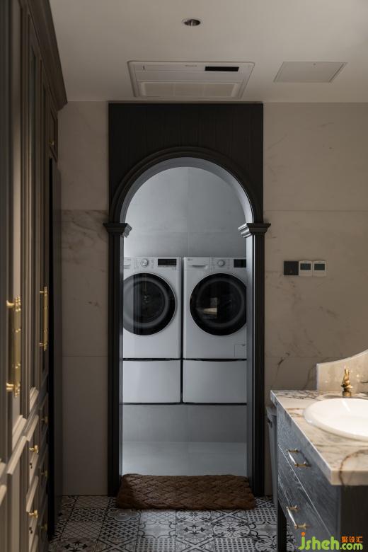住宅設計分了兩組洗衣機烘干機,主客分開使用更方便。業(yè)主說最好用的還是衣帽間的干衣柜,方便實用還不占地方,和衣柜融為一個整體。