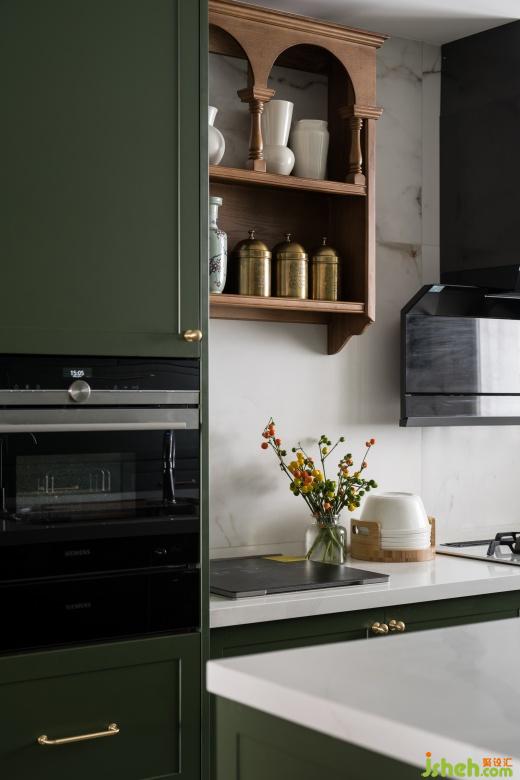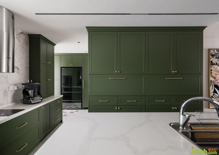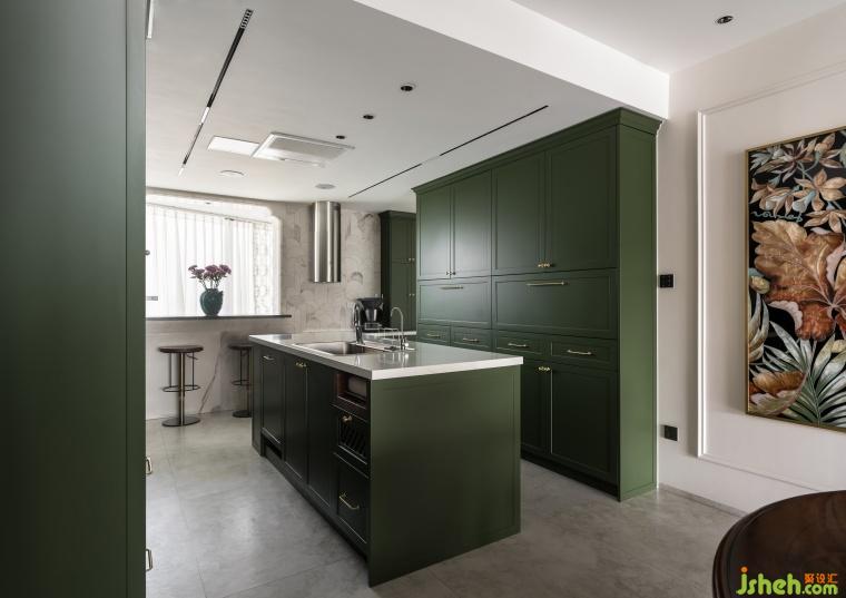 衣帽間融入了復古花磚點綴,綠色椅子呈現(xiàn)出獨有的品位,顏色搭配主打濃郁深沉,每一處角落都彌漫著日時光的迷人魅力。